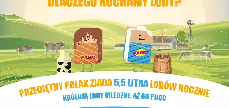Według ośrodka badań Kantar, przeciętny Polak zjada rocznie 5,5 litra lodów. W Polsce bezsprzecznie królują lody mleczne, aż 69 proc. z nas spożywa lody w domu. Ulubione smaki Polaków to wanilia, którą wybrało aż 48 proc. badanych, oraz czekolada, stanowiąca ulubiony smak aż 44 proc. z nas. Lody BOLERO wpisują się idealnie w nasze gusta. Są dokładnie takie, jak lubimy, przełożone pysznymi wafelkami , bez zbędnych składników modyfikowanych genetycznie.