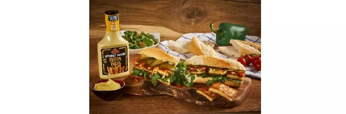 Bagietka z dodatkami to danie idealne, które można zjeść w domu czy zabrać na wynos. Przygotowując ją, możemy puścić wodze fantazji i wypełnić ją niezwykłymi produktami, takimi jak ser halloumi. Dzięki swojemu oryginalnemu, lekko słonemu posmakowi idealnie łączy się ze świeżymi warzywami, jak i owocami. Aby nasza bagietka była idealna, warto postawić na dodatek w postaci Sosu do Frytek Curry od Roleski. Sos z linii Street Food nie zawiera glutenu, GMO, konserwantów oraz glutaminianu sodu, a dzięki perfekcyjnie połączonym składnikom, charakterystycznej kwaskowości octu i aromatycznej mieszance przypraw curry, idealnie skomponuje się ze smakiem sera halloumi.