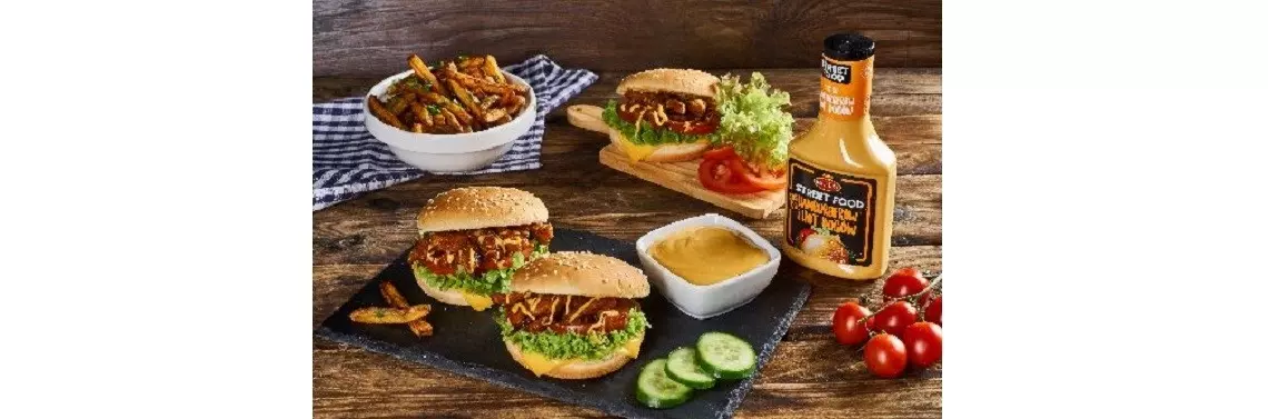 Sos do Hamburgerów i Hot Dogów z linii Street Food powstał na bazie jednego z najpopularniejszych sosów – Worcester – z dodatkiem kremowego majonezu, pomidorów i przypraw. Stąd idealnie sprawdzi się jako baza domowego burgera – w wersji mięsnej i wegetariańskiej.
