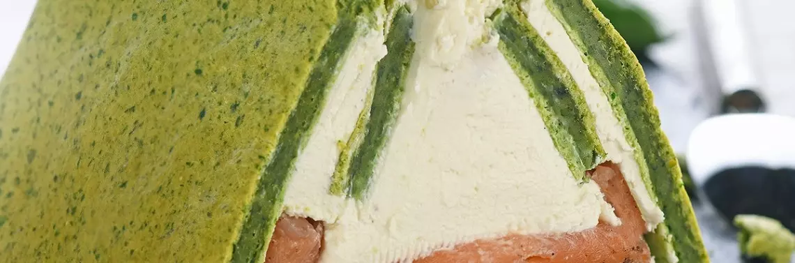 Szpinak zblendować na gładką masę. Z białek ubić pianę, dodając cukier i sól. Drewnianą łyżką wymieszać żółtka z mąką, ubitą pianą, proszkiem do pieczenia, olejem i zblendowanym szpinakiem. Ciasto przelać do blachy (40 cm x 30 cm) wyłożonej papierem do pieczenia i wstawić do wcześniej nagrzanego do 180°C piekarnika – piec około 25 minut. Po upieczeniu i całkowitym ostygnięciu, blat pociąć na 6 równych prostokątów. Pozostałe skrawki pokruszyć.