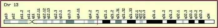 Rys. 2. Lokalizacja genu ATP7B na chromosomie 13 [3]