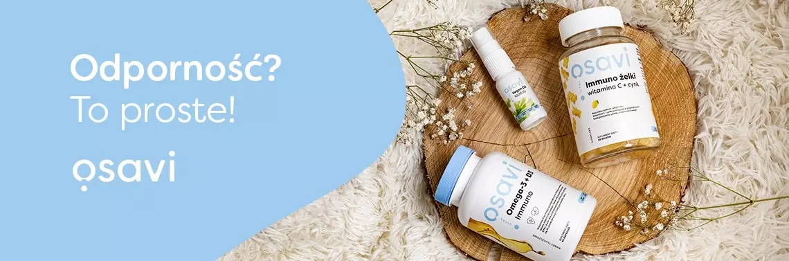 Przyjmowanie kilku suplementów może być uciążliwe, dlatego warto zainteresować się produktami łączonymi, takimi jak OSAVI Omega-3 + D3 IMMUNO, który zawiera podstawową porcję witaminy D3, czyli 2000 IU oraz 1300 mg kwasów omega-3. W przypadku małego spożycia ryb, pokrycie zapotrzebowania na kwasy omega-3 z dietą jest bardzo trudne. Marka OSAVI dba o środowisko, dlatego olej pochodzi z ryb ze zrównoważonych połowów.