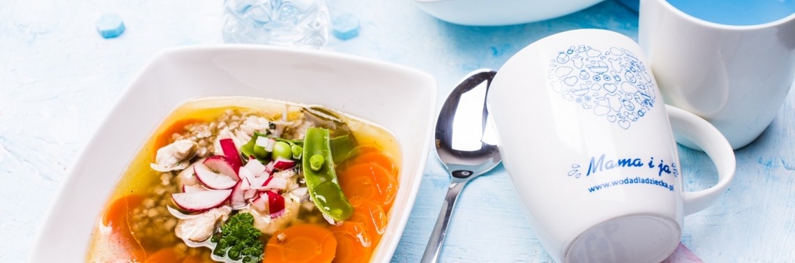 4. Mięso oraz marchewkę drobno pokrój i dodaj z powrotem do zupy.
