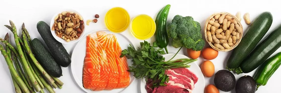 Dieta ketogeniczna to dieta wysokotłuszczowa, w której ok. 75% kaloryczności stanowią tłuszcze. Poziom węglowodanów w tym rodzaju diety jest niewielki i zazwyczaj wynosi ok. 30 g na dobę. Co spożywa się na diecie ketogenicznej? Przede wszystkim produkty bogate w tłuszcze, czyli mięso, jaja, ryby, owoce morza, zdrowe oleje, takie jak oliwa z oliwek, olej z awokado, wiesiołka, czarnuszki, orzechów włoskich, kokosowy, masło klarowane, dozwolone są też niemal wszystkie warzywa z wyjątkiem wysokowęglowodanowych, takich jak ziemniaki czy bataty, oraz niskowęglowodanowe owoce, np. maliny, truskawki, jagody, borówki, wiśnie, porzeczki, awokado. Posiłki można komponować też na bazie mąki...