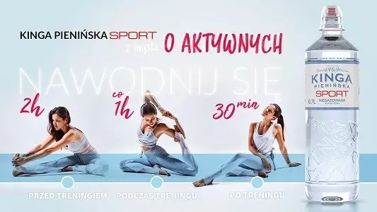 Doskonałym rozwiązaniem, nie tylko dla bywalców siłowni, będzie Kinga Pienińska SPORT - niegazowana woda mineralna o optymalnej dla osób aktywnych pojemności 700 ml. Dostępna w lekkiej i wygodnej butelce z praktycznym zamknięciem typu sport cap, Kinga Pienińska Sport sprawdzi się podczas biegu, na fitnessie i przy wielu innych okazjach. Kinga Pienińska jest doskonałym rozwiązaniem dla miłośników aktywności fizycznej, również ze względu na zbilansowaną zawartości minerałów.