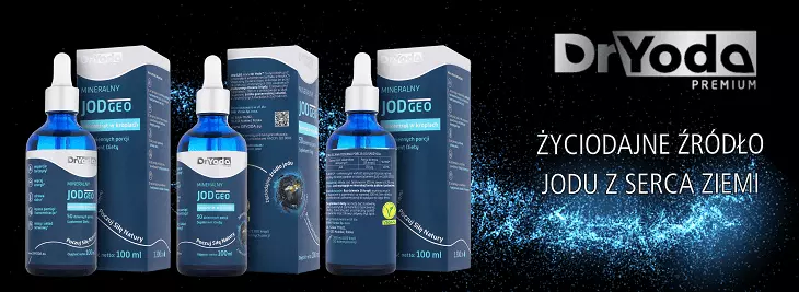 Jednym z najskuteczniejszych suplementów jodu na rynku jest Mineralny Jod Geo marki Dr Yoda Premium. To polski produkt w postaci mineralnej jonowej, pozyskiwany z unikalnego źródła solankowego, będącego reliktem oceanu Tetyda.