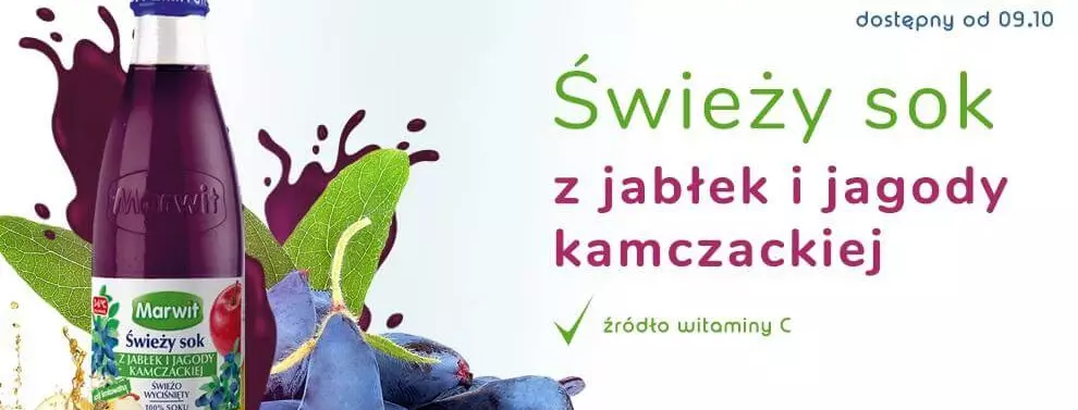 Jagody kamczackie są znane w medycynie ludowej głównie ze względu na swoje liczne walory prozdrowotne. Te niewielkie owoce o intensywnym, fioletowym kolorze pozwalają obniżyć ciśnienie, zmniejszają ryzyko zawału i zapobiegają anemii. Jagoda kamczacka wzmacnia odporność organizmu, spowalnia rozwój jaskry, działa też antybakteryjnie. Nic więc dziwnego, że Marwit wybrał właśnie ten owoc jako dodatek do jesiennej, limitowanej edycji soków.