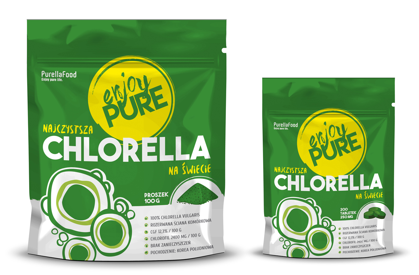 Chlorella od Purella Food to najczystsza odmiana algi dostępna w Polsce, pochodząca z Korei Południowej. Hodowana w specjalnych, zamkniętych zbiornikach ma nadzwyczajne właściwości odżywcze i uodparniające. Jest bogata w wiele witamin i składników mineralnych takich jak np. witaminy z grupy B w tym aktywnej witaminy B12, którą organizm potrafi wykorzystać do produkcji energii. Dzięki dużej zawartości witaminy C alga potrafi uchronić przed wirusami a dostarczanie jej