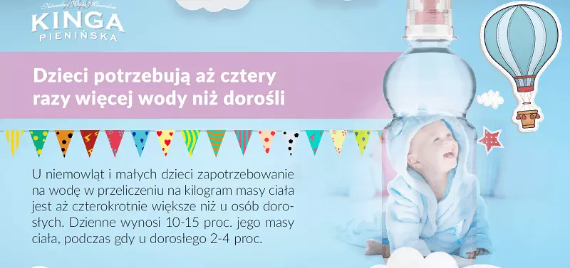 Woda ma lekkie, poręczne opakowanie z wygodnym zamknięciem typu 'sport cap' i przyciągające uwagę grafiki z popularnymi postaciami z bajki Super Wings. Bajka Super Wings jest bardzo popularna wśród dzieci, co pokazują badania – produkcja cieszy się najwyższą oglądalnością na kanale TVP ABC, gdzie jest emitowana. Postacie z bajki o drużynie bohaterskich samolotów umieszczone na etykiecie Kingi Pienińskiej przykuwają uwagę najmłodszych i mogą skłonić ich do wyboru naturalnej wody zamiast smakowej. Butelkę o optymalnej pojemności 330 ml dziecko może zabrać ze sobą do szkoły lub na wycieczkę.