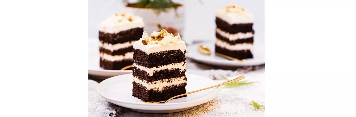 Ciasto przekrój na 3 poziome części, które kolejno przełóż kremem.