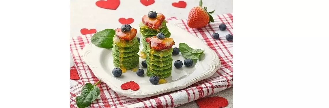 Mąkę wymieszać z proszkiem do pieczenia i solą. W oddzielnym naczyniu wymieszać mleko, jajka, olej, ekstrakt z wanilii i miód. Dodać szpinak i dokładnie zmiksować. Następnie połączyć suche składniki z mokrymi. Mieszać do uzyskania jednolitej gładkiej masy. Nakładać łyżką małe porcje ciasta na rozgrzaną patelnię pokrytą tłuszczem. Po pojawieniu się bąbelków na cieście obrócić na drugą stronę. Serwować ukochanej osobie ze świeżymi owocami, miodem lub syropem klonowym i pięknym uśmiechem.