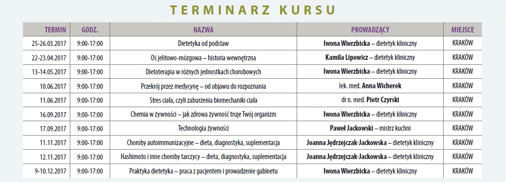 Zapisy na kurs na stronie: www.ajwendieta.pl