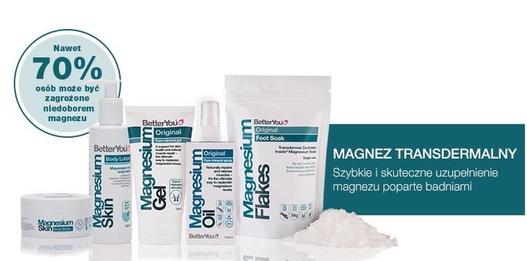 Jaka jest najlepsza suplementacja magnezu? Choć zwykle sięgamy po tabletkę, badania przeprowadzone pod okiem dr. Charlesa Heard z uniwersytetu w Cardiff udowadniają, że magnez podany przez skórę działa 5 razy szybciej. Minerał jest wchłaniany poprzez pory bezpośrednio do komórek krwi i mięśni. Ta metoda została zapoczątkowana przez pionierskiego producenta suplementów BetterYou (betteryou.com). Produkty magnezowe BetterYou to wyłącznie naturalny chlorek magnezu pozyskiwany z dna dawnego morza Cechrsztyńskiego, które stanowi jego najczystsze złoże na ziemi.