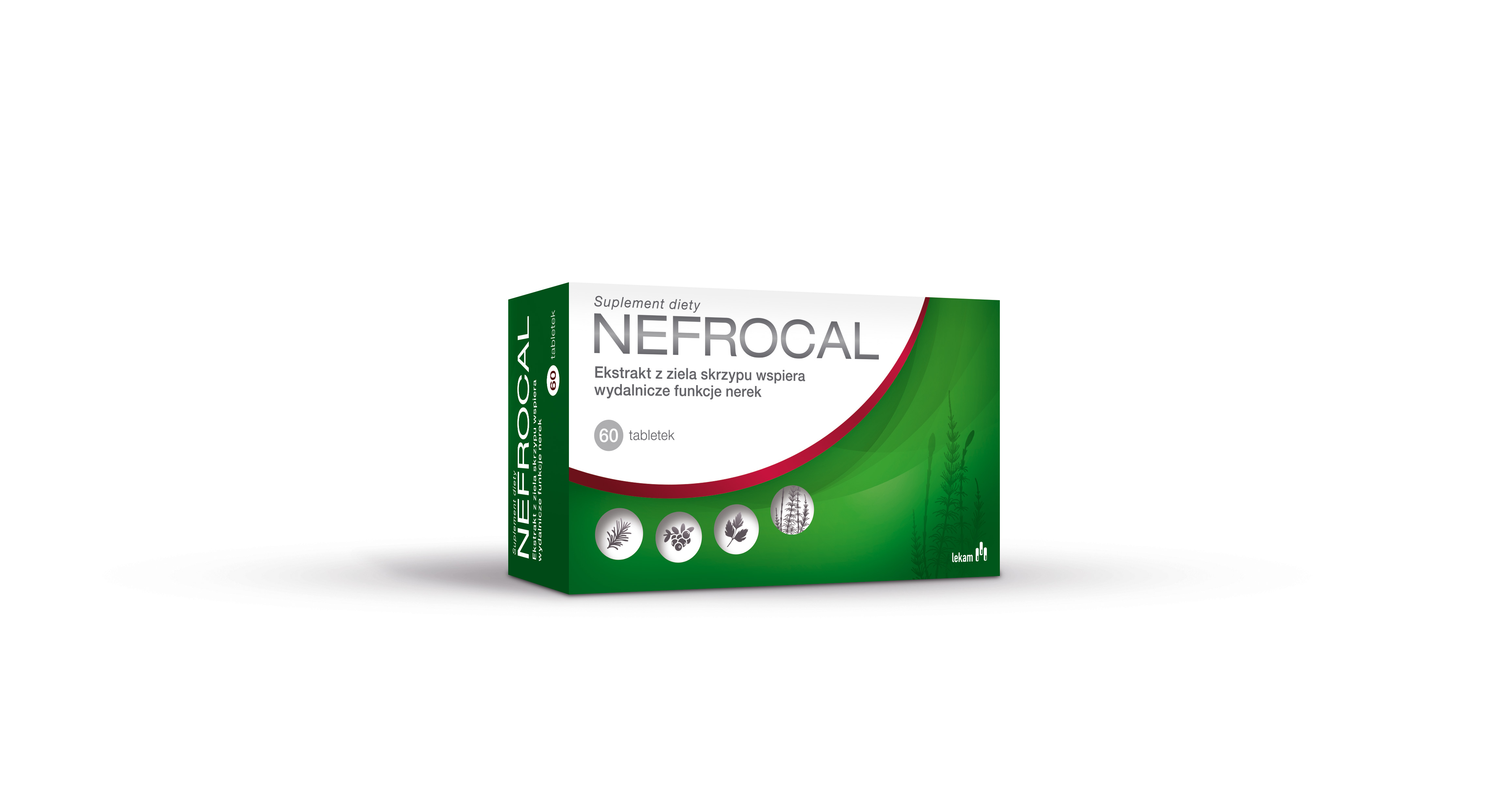 NEFROCAL to nowoczesny suplement diety przeznaczony dla osób dbających o zachowanie zdrowia układu moczowego. Wspiera wydalnicze funkcje nerek (ekstrakt z ziela skrzypu polnego). Wykazuje działanie moczopędne, dzięki czemu przyczynia się do ułatwienia wydalania wody z organizmu (ekstrakt z korzenia lubczyku). Pomaga w utrzymaniu równowagi elektrolitowej (magnez). Wspiera utrzymanie prawidłowego metabolizmu homocysteiny (witamina B6).