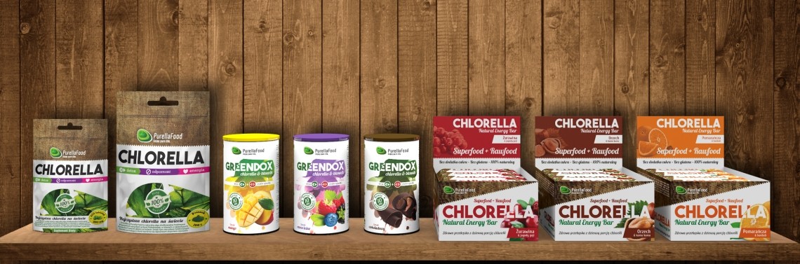 Chlorella od Purella Food hodowana jest w specjalnych warunkach w Korei Południowej, w stawach o najwyższych standardach kontroli jakości. Jest ekologiczna i całkowicie bezpieczna dla naszego organizmu - odkwasza i pozbawia go toksyn. Uzbrojona w naturalne wartości odżywcze dodaje nam energii, wspiera odporność i utrzymuje nasze ciało w dobrej kondycji. Chlorella to mikroskopijnej wielkości, słodkowodna alga o ciemnozielonej barwie. Niosąca w swoim składzie bogactwo chlorofilu oraz witaminy A, B1, B2, B6, B12, C i E. Alga ta zaliczana jest do elitarnego grona super-food, czyli żywności, która posiada wyjątkowo cenne dla organizmu składniki. Obok nienasyconych kwasów tłuszczowych, peptydów, aminokwasów, glikoprotein, przeciwutleniaczy, witamin i minerałów, zawiera najwyższą zawartość chlorofilu ze wszystkich organizmów żywych. Ma go pięciokrotnie więcej niż pszenica, dwunastokrotnie więcej niż jęczmień i prawie dziesięć razy więcej niż lucerna. Chlorella jest też naturalnym i oczywistym suplementem diety każdego sportowca. Zapewnia organizmowi detoksykację i umożliwia mu osiągnięcie 100 % swoich możliwości. Bogata w chlorofil, żelazo oraz witaminy z grupy B, wspiera produkcję czerwonych krwinek, dzięki czemu działa jak naturalny doping na nasze ciało. Chlorella posiada szeroki profil aminokwasowy w tym tzw. aminokwasy BCAA, wchodzące w skład białek budujących mięśnie. Zawiera również unikatowy składnik zwany czynnikiem wzrostu CGF (Chlorella Grow Factor), bogaty w kwasy nukleinowe - niezbędne do budowy i prawidłowego funkcjonowania organów, naprawy i regeneracji komórek oraz ich podziału. Chlorella wykazuje silne działanie antyseptyczne oraz detoksykacyjne, które bezwarunkowo sprzyja poprawie wyglądu naszej skóry. Tę zieloną algę wykorzystuje się w kosmetyce do pielęgnacji skóry twarzy, szyi i dekoltu. Maseczki, które w składzie zawierają proszek chlorelli intensywnie i trwale nawilżają naskórek oraz głębsze warstwy skóry, skutecznie zapobiegając nadmiernej utracie przez nią wody. Chlorella dba o naszą skórę również od środka – pomaga przywrócić jej blask i promienność, poprzez usunięcie z organizmu wolnych rodników, odpowiedzialnych za starzenie się skóry. Chlorella, której dystrybutorem jest Purella Food to najczystsza alga pochodząca z Korei, hodowana w specjalnych warunkach w stawach o najwyższych normach jakości. Występuje w 4 postaciach. Tabletek, które w łatwy i szybki sposób można aplikować kilka razy dziennie, w formie sproszkowanej - idealnie nadającej się jako składnik do koktajlów, czy smoothies w formie batonów Chlorella Natural Energy Bar, które łączą w sobie naturalne składniki takie jak suszone owoce i egzotyczne dodatki (baobab, kamu kamu czy jagody goji) z chlorellą oraz w formie kuracji oczyszczającej Greendox, łączącej chlorellę z najwyższej jakości błonnikiem mikronizowanym Wszystkie produkty Purella Food spełniają standardy najwyższej jakości i mogą być spożywane przez osoby starsze, dzieci oraz kobiety w ciąży.