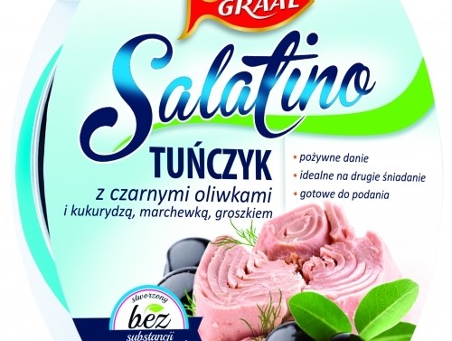 Sałatki z rybami i owocami morza to potrawy cieszące się coraz większym powodzeniem wśród konsumentów, którzy poszukują gotowych, smacznych dań na co dzień. Dlatego marka GRAAL, będąca liderem sałatek konserwowych z 41% udziałem w rynku, postawiła na nowe rozwiązania w swojej ofercie proponując konsumentom innowacyjny produkt. Salatino to pięć propozycji smakowych, których głównym elementem bazowym jest tuńczyk. Obecnie na rynku dostępne są następujące wersje:
