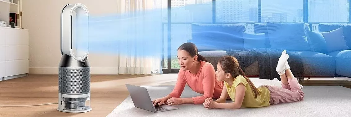 Nowy oczyszczacz powietrza z funkcją nawilżania Dyson Pure Humidify+Cool™ zaprojektowany przez mikrobiologów i inżynierów firmy Dyson, wykorzystuje rewolucyjną Technologię Dyson Ultraviolet Cleanse, która pozwala usuwać 99,9% bakterii w zbiorniku z wodą, już przy pierwszym kontakcie[1]. Dodatkowo, w trójwymiarową siatkę dysku ewaporacyjnego wplecione są biostatyczne srebrne pasma, które zapobiegają dalszemu namnażaniu się bakterii wewnątrz urządzenia. Pomaga to w higienicznym nawilżaniu[1] powietrza filtrowanego przez filtr HEPA.