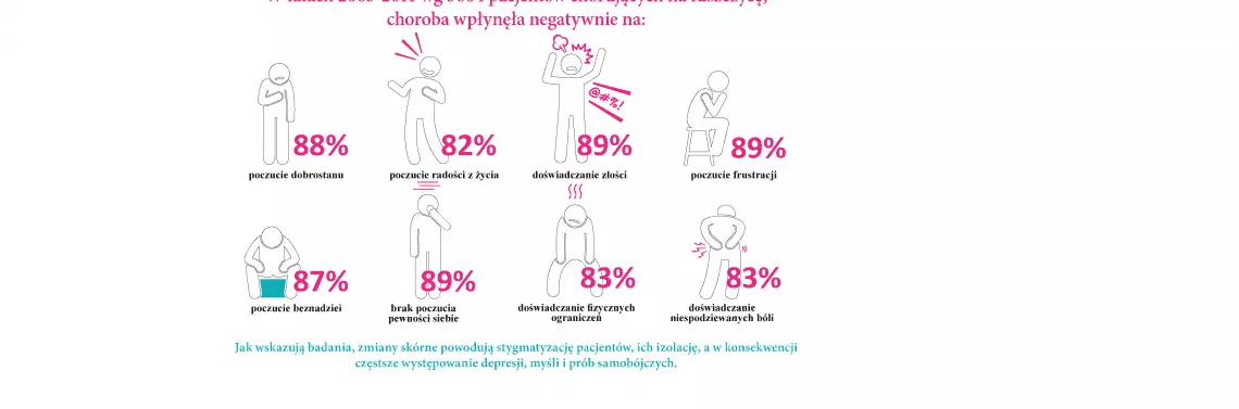 Łuszczyca jest przewlekłą, zapalną chorobą skóry mediowaną immunologicznie, która dotyczy w Polsce około 1 miliona osób. W około 30% przypadków chorobie towarzyszy łuszczycowe zapalenie stawów. Współwystępowanie innych chorób, m.in. układu krążenia czy zespołu metabolicznego pozwala zakwalifikować łuszczycę do chorób ogólnoustrojowych. Stygmatyzacja chorych poprzez zmiany skórne powoduje, że łuszczyca ma też istotny wymiar psychospołeczny. Dlatego też podejmowane są takie kampanie edukacyjne jak „Łuszczyca i ŁZS - dość wykluczenia! Zobacz mnie. Nie moją skórę”, która ma na celu zwrócenie społecznej uwagi na fakt, iż akceptacja czasem nieestetycznego wyglądu skóry osób z łuszczycą jest kluczowym elementem terapii. W przypadku tej choroby niejednokrotnie to właśnie silny stres wywołuje pierwsze objawy, a potem w trakcie jej trwania stres, który wynika z braku akceptacji otoczenia, jest przyczyną pogorszenia stanu zdrowia i spadku jakości życia pacjentów.