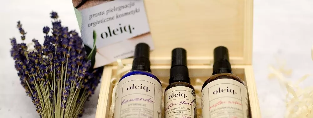 Organiczne kosmetyki OLEIQ to nowa seria kosmetyków firmy SYLVECO, oferująca hydrolaty oraz naturalne oleje roślinne, których działanie jest znane i sprawdzone od stuleci. Kosmetyki te posiadają właściwości kojące i wyciszające, utrzymują nawilżenie i odmładzają. Zestaw składający się z hydrolatu, oleju dedykowanemu do pielęgnacji twarzy oraz oleju do pielęgnacji ciała i włosów QLEIQ, jest umieszczony w pudełku z naturalnego drewna, które nadaje uroku i sprawia, że kompozycja kosmetyków jest odpowiednio wyeksponowana. Drewniane pudełko zawiera uniwersalną kompozycję hydrolatu OLEIQ lawenda 100 ml, oleju do pielęgnacji ciała i włosów OLEIQ pestki wisni 100 ml oraz oleju do pielęgnacji twarzy OLEIQ pestki śliwki 30 ml.