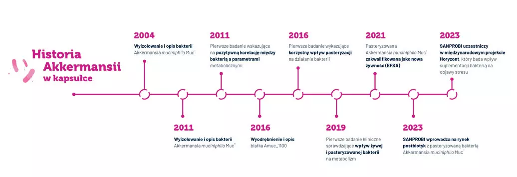W Polsce produkt dostępny jest od kwietnia 2023 roku jako Sanprobi Premium [14, 15]. Pasteryzowana A. muciniphila MucT ma również potencjalne działanie psychobiotyczne i w projekcie „Horyzont” rozpoczęły się międzynarodowe badania nad jej potencjalnym korzystnym działaniem na skutki stresu.