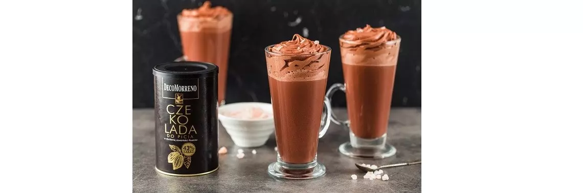 Koneserów gorącej czekolady z pewnością ucieszy informacja o hicie tej jesieni! Bądźcie czujni – na półkach jest już smakowity produkt autorstwa marki DecoMorreno. Jest to wyśmienita czekolada do picia o prawdziwie intensywnym i jeszcze bardziej wciągającym smaku. Wyraziście zarysowany główny bohater w postaci wysokiej jakości kakao z odpowiednio wyważonym, towarzyszącym mu wątkiem słodyczy, tworzą doskonałą opowieść o smaku, od którego nie będziecie się mogli oderwać! Czekolada do picia DecoMorreno zawiera bowiem aż 43% kakao. Dzięki temu zaskakuje wyrazistością smaku, której trudno się oprzeć. Już pierwszy łyk czekolady sprawi, że przeniesiecie się w świat niezapomnianych doznań i dacie się porwać nurtowi ekscytującej narracji, która z każdą sekundą staje się coraz bardziej intensywna i, tak jak dobra powieść, zachwyca do samego końca!