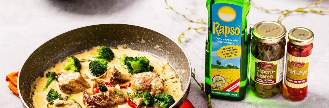 2. Na patelni rozgrzewamy 2 łyżki oleju, następnie układamy polędwiczki i smażymy ze wszystkich stron mięso.