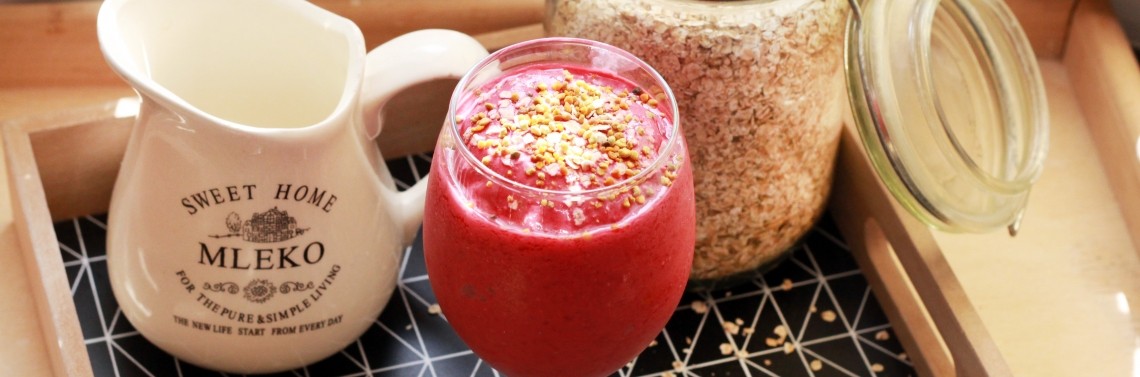 Wszystkie składniki zblenduj ze sobą do uzyskania jednolitej, kremowej konsystencji. Po przelaniu do szklanki, czy kieliszka posyp Pyłkiem Kwiatowym.