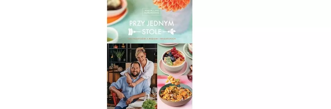 On jest miłośnikiem tradycyjnej kuchni. W jego jadłospisie często występują mięsa, ryby i nabiał. Ona z kolei jest rozmiłowana w warzywach i strączkach, szuka jak najzdrowszych rozwiązań, tworząc warzywne kompozycje z wyjątkowym charakterem. W ich wspólnej książce czytelnicy znajdą zbiór stu autorskich przepisów. Każde danie zostało tu przygotowanew dwóch odsłonach –wegańskiej (zaproponowane przez Anetę) i zmięsem (to domena Jaśka). W pewnym sensie zatem możemy się przekonać, jak bardzo łączy nas stół. Nawet wówczas, gdy lubimy zupełnie inne rzeczy...Gotowanie według Anety i Jaśka oparte jest na mnogości wspólnych składników, aby pokazać, że nawet przy kompletnie odmiennym podejściu do kuchni można z tych samych lub bardzo podobnych produktów przygotować posiłki, które zjemy razem. Książka jest zarazem swoistą podróżą kulinarną, gdyż autorów inspiruje to nie tylko kuchnia polska, ale także dania, którymi świat zajada się od lat. Przykładowo –przepyszne, inspirowane kuchnią azjatycką bułeczki bao mają w książce swoją wersję z szarpanym mięsem wieprzowym, kimchi i sałatą rzymską,oraz wegańską –z boczniakami i pastą z czarnej fasoli. Z kolei rdzennie słowiański smalec Jasiek przyrządził w wariancie najbardziej tradycyjnym, na słoninie z dodatkiem jabłka, a Aneta w wersji roślinnej, z fasoli. Danie zaczerpnięte z kuchni niemieckiej, bo hamburgery są (to chyba oczywiste!) z... Hamburga, przygotować można w klasycznej odsłonie –z wołowiny albo nowocześnie – z grzybów i brązowego ryżu.
