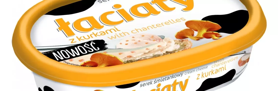 Mlekpol oferuje serki śmietankowe pod marką Łaciaty w 9 smakach: naturalny, z chrzanem, z czosnkiem, meksykański, z cebulą i szczypiorkiem, z suszonymi pomidorami, z ziołami, z zielonymi oliwkami oraz z łososiem i koperkiem. Rosnąca popularność produktów i uniwersalność ich zastosowania w kuchni spowodowała, że Mlekpol postanowił wprowadzić kolejną propozycję, która celnie trafia w gusta konsumentów. Serek śmietankowy Łaciaty z kurkami to połączenie gęstej, kremowej konsystencji i lekkiego śmietankowego smaku, które idealnie współgrają z charakterystycznym aromatem leśnych grzybów. Serek Łaciaty z kurkami znakomicie sprawdzi się na kanapkach, jako baza sosów do mięs i warzyw oraz w daniach z makaronu. Wszystkie serki śmietankowe Łaciate podane są w wygodnym, estetycznym opakowaniu o pojemności 135 g.