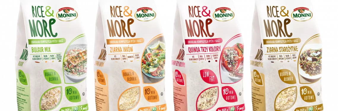 Rice& More od Monini to wyjątkowe zestawienie specjalnie wyselekcjonowanych, najwyższej jakości ziaren ryżu i kasz. Rice& More to więcej niż ryż: