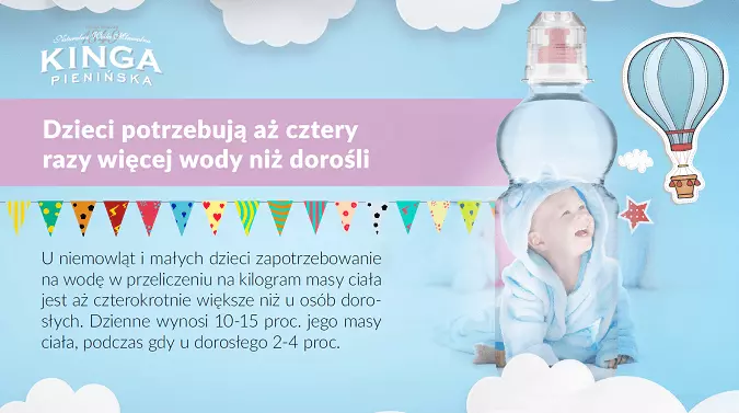 Równie ważne jak to, ile płynów podajemy swojemu dziecku jest to, jakie napoje od nas otrzymuje. Wyniki ostatnich badań, realizowanych przez TNS Polska sygnalizują bardzo niepokojący trend wśród polskich dzieci. Mimo tego, że spożywają one dziennie średnio tyle płynów, ile zalecają specjaliści, aż 60 proc. napojów, po które sięgają, zawiera naturalny lub dodany cukier. Wyrobienie nawyku picia czystej wody, pozbawionej cukru i zbędnych kalorii wspiera zaś zdrowy rozwój. „Woda bierze udział w wielu procesach zachodzących w organizmie, dlatego też odpowiednie nawodnienie zapewnia m.in. optymalną pracę mózgu czy też jelit. Dziecko należy edukować od samego początku i przyzwyczajać do picia wody tak, by wyrobić w nim nawyk sięgania po nią, nawet w momentach, w których nie czuje ono wielkiego pragnienia” – tłumaczy Pomorski.