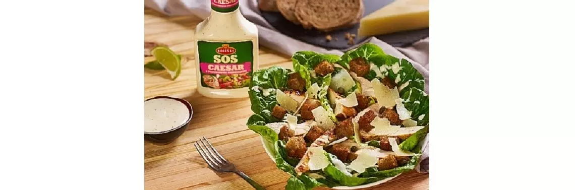 Sałatkę Cezar zna i uwielbia każdy fan kuchni włoskiej. To popularne, lekkie danie serwowane jest w wielu restauracjach na całym świecie. Prawdziwe piękno tkwi w jej prostocie, ponieważ do przygotowania sałatki Cezar nie potrzebujemy zbyt wielu składników. Kropką nad i przepisu jest dodanie Sosu Roleski, który idealnie uzupełni jej smak. Sos Caesar Roleski to kremowa konsystencja z wyraźnie wyczuwalnym serem Parmigiano Reggiano oraz wyjątkową kompozycją czosnku i anchois. Sos Caesar firmy Roleski nie posiada w swoim składzie glutenu, glutaminianu sodu czy konserwantów. Jest także wolny od GMO, dlatego bez strachu możemy dodawać go do sałat oraz innych codziennych posiłków.