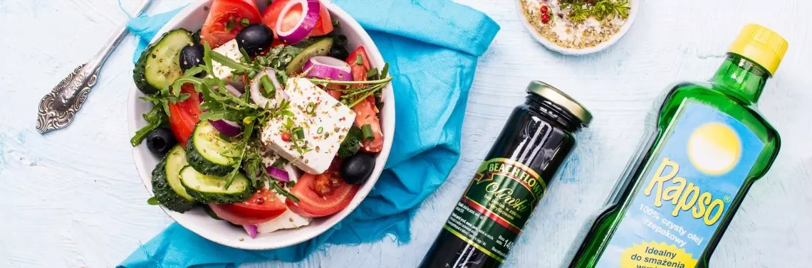 3. Na wierzch sałatki połóż kawałki sera – nie musisz go kroić, może być połamany.