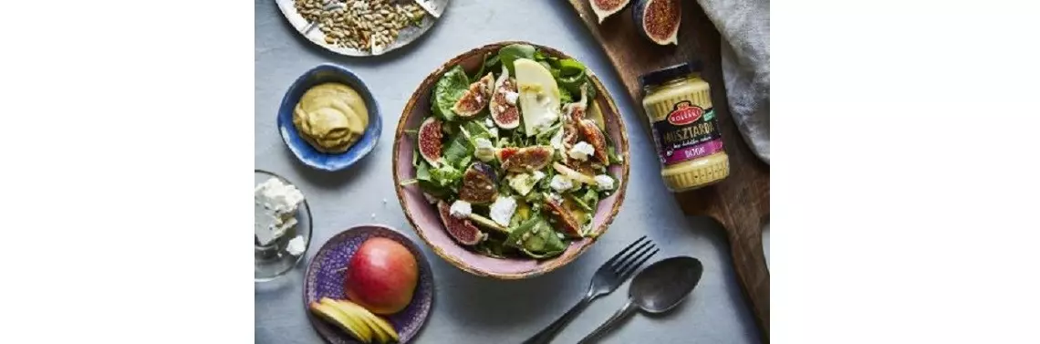 Koniec lata to okres pojawiania się świeżych fig, które pochodzą z krajów śródziemnomorskich. Poza ich pysznym i słodkim smakiem, figi są bardzo dobrym źródłem żelaza i błonnika. Zawierają również witaminę C, A oraz witaminy z grupy B. Znane nam pyszne, fioletowe figi dodają estetyki potrawie i pięknie prezentują się na talerzu. Sałatka z figami, jabłkiem, fetą z dodatkiem orzechów włoskich i Musztardy Dijon Roleski bez cukru to wyjątkowa kompozycja, która potrafi zaskoczyć niecodziennym smakiem. Zwolennikom niecodziennych połączeń smakowych polecamy wypróbować pyszną sałatkę, która łączy słodycz fig z ostrzejszym smakiem musztardy i słoną fetą. To idealna opcja zarówno na kolację we dwoje, jak i towarzyskie spotkanie.