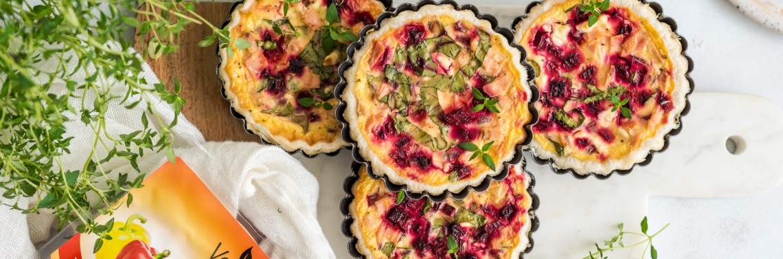 Wegetariańskie mini tarty z botwinką i plastrami z papryką