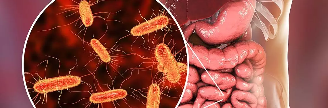 Jedną z prawdopodobnych przyczyn utrzymujących się objawów ze strony przewodu pokarmowego jest zespół rozrostu bakteryjnego jelita cienkiego (ang. small intestine bacterial overgrowth, SIBO). Wskutek zaburzonych mechanizmów obronnych przewodu pokarmowego [np. podczas przewlekłej terapii lekami z grupy inhibitorów pompy protonowej (IPP), zmniejszającymi produkcję kwasu żołądkowego], zaburzonej motoryki przewodu pokarmowego (np. podczas terapii lekami przeciwbólowymi z grupy opiatów), czy zaburzeń anatomicznych (np. zrosty po cięciu cesarskim wpływające na zwężenie jelit czy uchyłki okrężnicy) dochodzi do zaburzeń ilościowych i jakościowych bakterii w jelicie cienkim, czyli nadmiernego ich wzrostu oraz zmiany ich składu. Pojawiają się bakterie Gram-ujemne charakterystyczne dla jelita grubego, tzw. coliform [3]. Rozrost w jelicie cienkim bakterii charakterystycznych dla okrężnicy wiąże się ze wzrostem...