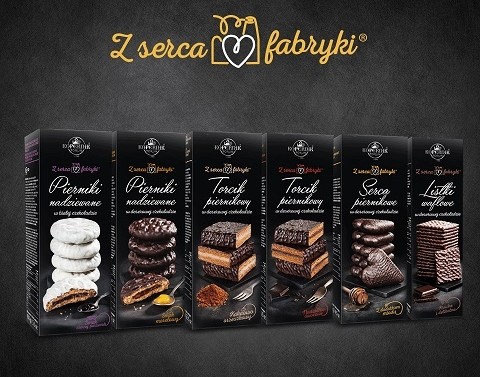 Te i inne sekrety „Z serca fabryki” znajdziemy na odwrocie pudełka wraz z czarno - białymi historycznymi zdjęciami fabryki i jej pracowników. Inne dla każdego wariantu między innymi Torcika Piernikowego, który do dzisiaj jest przygotowywany ręcznie. W skład linii Z serca fabryki wchodzą: Serca piernikowe w czekoladzie - z dodatkiem miodu, Pierniki nadziewane w czekoladzie – morela, Pierniki nadziewane w białej czekoladzie – czarna porzeczka, Torcik piernikowy z nadzieniem kakaowo-orzechowym, Torcik piernikowy z nadzieniem owocowym oraz Listki waflowe. Należy podkreślić fakt, że produkty te oblane są najwyższej jakości deserową czekolada, bez tłuszczu palmowego i konserwantów.