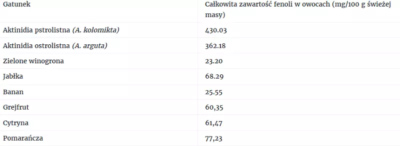 Chińczycy docenili wartość owocu aktinidii, który jest ich owocem narodowym i uznanym także jako leczniczy. Jest to jedno z najbogatszych źródeł witaminy C - owoce Aktinidii ostrolistnej zawierają jej nawet do 430 mg/100 g świeżej masy. Swoją wartość antyutleniającą, a tym prozdrowotną, zawdzięczają także wysokiej zawartości fenoli (do 1311,1 mg / 100 g świeżej masy), ok. 14 razy wyższej niż w cytrusach i jabłkach, szczególnie w skórce (tab. 1 i 2).