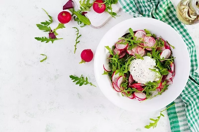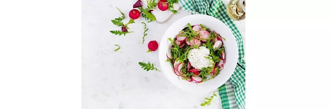 Przygotowanie: Najpierw dokładnie myjemy warzywa. Rukolę osuszamy i przekładamy na głęboki talerz. Rzodkiewki kroimy w plastry. Proponowany twarożek w tym przepisie jest już dobrze doprawiony, więc możemy od razu przełożyć go na talerz bądź opcjonalnie dodać do niego słodką/ostrą paprykę. Wszystkie składniki mieszamy, a na sam koniec skrapiamy sałatkę sokiem z cytryny. Smacznego!