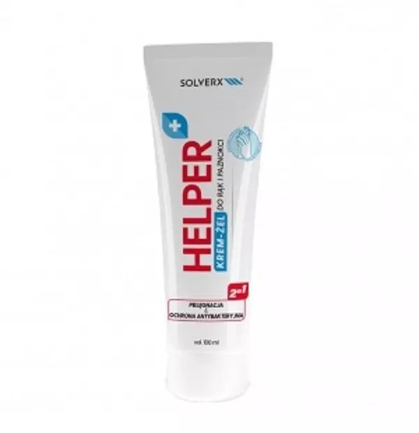 HELPER krem-żel do rąk i paznokci firmy Solverx to kosmetyk mający wyjątkową konsystencję kremo żelu, dzięki czemu jest bardzo delikatny i świetnie się wchłania. Przeznaczony jest do rąk i paznokci, które wymagają szybkiego nawilżenia, odnowy i regeneracji a zarazem ochrony antybakteryjnej. Krem jest rekomendowany zwłaszcza dla osób intensywnie używających alkoholowych środków do dezynfekcji rąk. To idealnie rozwiązanie dla Dziadków, którzy w dobie pandemii narażeni są na podrażnienia skóry ze względu na częstą dezynfekcję dłoni.