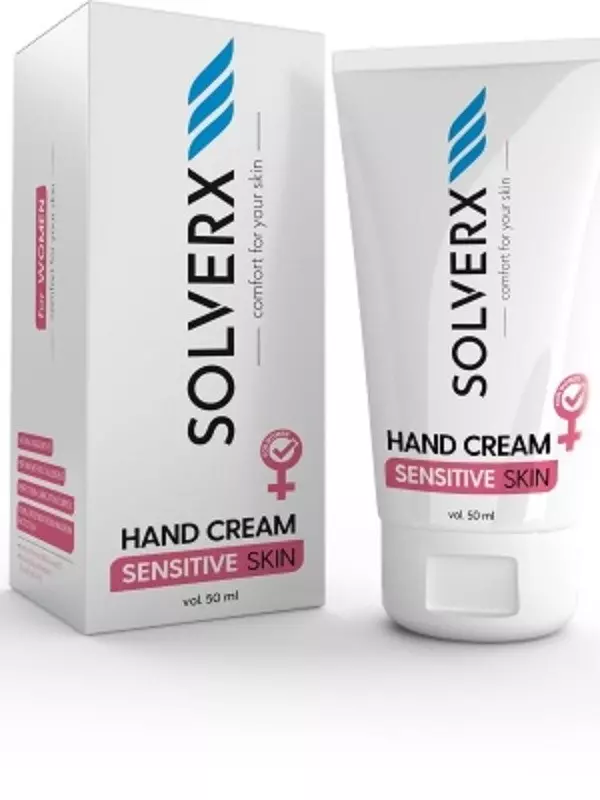 Sensitive Skin Woman Hand Cream firmy Solverx to krem do rąk przeznaczony do skóry wrażliwej. Unikalny kompleks olejów lnianego oraz oleju z wiesiołka z oliwą z oliwek zawarty w kremie, zapewnia perfekcyjne natłuszczenie skóry. Innowacyjne połączenie ekstraktu z krwawnika i lukrecji wraz z kwasem laktobionowym regeneruje, nawilża i łagodzi podrażnienia.