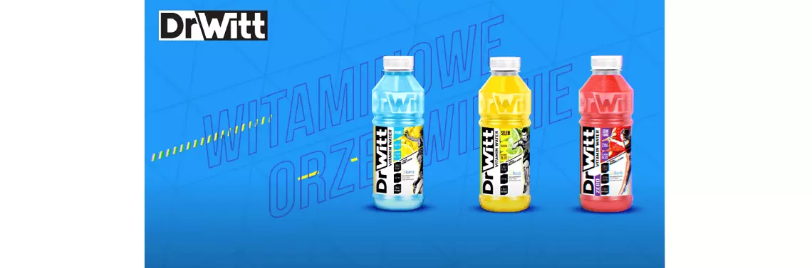 Nowa linia DrWitt Vitamin Water to 3 pyszne smaki: mango – cytryna z dodatkiem witamin i magnezu, grapefruit – aloes z witaminami oraz selenem, a także wersja bez dodatku cukru o smaku truskawkowo-cytrynowym, oczywiście z witaminami i cynkiem. Wszystkie w nowoczesnych, wygodnych opakowaniach o pojemności 550 ml.