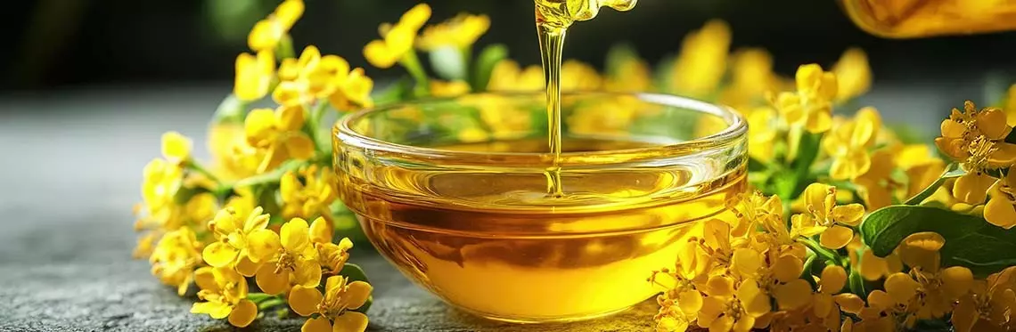 Olej rzepakowy charakteryzuje się wysoką zawartością nienasyconych kwasów tłuszczowych, w szczególności kwasu oleinowego, kwasu linolowego i kwasu α-linolenowego (ALA). Olej zazwyczaj zawiera ok. 61% jednonienasyconych kwasów tłuszczowych (MUFA) i ok. 32% wielonienasyconych kwasów tłuszczowych (PUFA), z korzystnym stosunkiem kwasów tłuszczowych omega-6 do omega-3 wynoszącym około 2:1, co sprzyja zdrowiu układu sercowo-naczyniowego [1, 2]. Ten stosunek jest szczególnie ważny, ponieważ pomaga złagodzić ryzyko choroby wieńcowej, zgodnie z zaleceniami amerykańskiej Agencji ds. Żywności i Leków [1, 2]. Ponadto olej rzepakowy jest bogaty w przeciwutleniacze (tokoferole, polifenole, karotenoidy), chroniące komórki przed stresem oksydacyjnym [1, 3]. Obecność fitosteroli w oleju rzepakowym dodatkowo zwiększa jego wartość odżywczą. Badania wykazały, że ponad 55% całkowitej ilości fitosteroli migruje do oleju rzepakowego podczas przetwarzania, co może pomóc obniżyć poziom cholesterolu w surowicy krwi i poprawić zdrowie serca [4, 5]. Olej zawiera również karotenoidy i związki fenolowe, które są związane z różnymi korzyściami zdrowotnymi, w tym działaniem przeciwzapalnym i przeciwutleniającym [6, 7].