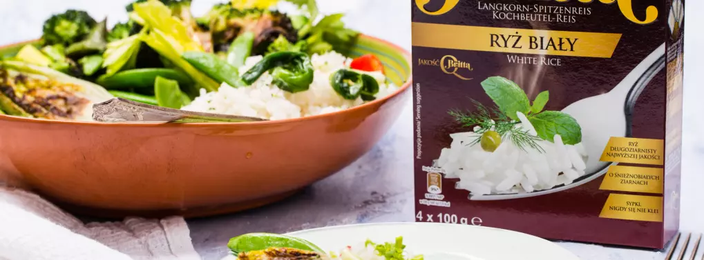 5.W międzyczasie gotujemy ryż według zaleceń producenta.