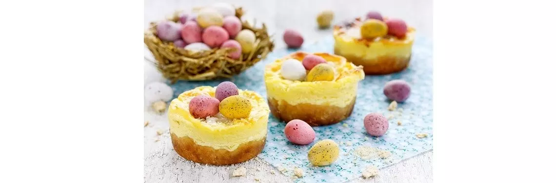 Co powinno znaleźć się w Wielkanocnym koszyczku? Oczywiście: chleb, sól i pieprz, baranek, wędlina, jajko i ciasto. To ostatnie to stosunkowo młody zwyczaj, który jest symbolem umiejętności i doskonałości. Dlatego najlepiej, by był to domowy wypiek. Zamiast tradycyjnej wielkanocnej baby, przygotujcie do święconki pyszne i efektowne mini serniczki. To bardzo proste!
