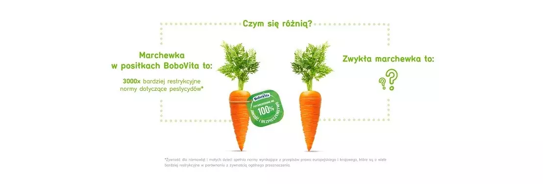 Organizm niemowlęcia, a później małego dziecka jest szczególnie wrażliwy przez cały okres 1000 pierwszych dni życia. To czas, w którym dojrzewa układ pokarmowy, metabolizm, a mechanizmy chroniące malucha przed czynnikami ze środowiska zewnętrznego wciąż się kształtują. Nie bez przyczyny kluczową rolę odgrywa wtedy właściwy sposób żywienia – oparty na pokarmach bezpiecznych i odpowiedniej jakości. BoboVita zna potrzeby najmłodszych, dlatego z wyjątkową troską dba o składniki w swoich produktach na każdym etapie. Mamo, Tato, odkryjcie warzywa, owoce, ryby, mięso i zboża o jakości, do których możecie mieć 100% zaufania!