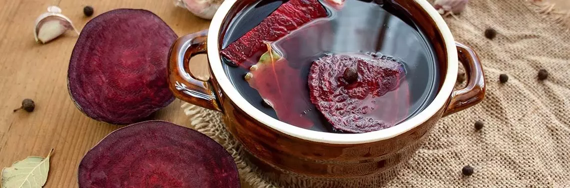 Zakwas to płyn uzyskiwany poprzez fermentację surowców roślinnych, głównie warzyw. Proces ten opiera się na fermentacji zachodzącej w warunkach beztlenowych, podczas której odpowiednie bakterie z rodziny Lactobacteriaceae przekształcają cukry proste do kwasu mlekowego [1]. Metoda ta od wieków wykorzystywana jest w przetwórstwie do przedłużania trwałości owoców i warzyw oraz poprawy ich właściwości organoleptycznych. Powszechnie znanym zakwasem warzywnym jest zakwas na bazie buraka czerwonego. Charakteryzuje się on piękną czerwono-fioletową barwą oraz orzeźwiającym, wyrazistym, słodko-kwaśnym smakiem i zapachem [2].