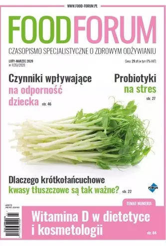 W pierwszym w tym roku wydaniu czasopisma “Food Forum” zachęcamy Państwa do lektury działu “Układ trawienny i probiotykoterapia”. Piszemy w nim między innymi o probiotykach w stresie czy wybranych hormonach jelitowych i ich roli w naszej gospodarce energetycznej. W rubryce “ABC prawidłowego żywienia” czekają na Państwa treści na temat przetworów zbożowych, stosowania konserwantów w żywności oraz witaminie D i jej wpływie na zdrowie i skórę. Dla mam polecamy artykuł “Wprowadzanie pokarmów uzupełniających. Jak zadbać o odpornośc małego dziecka?”. Miłośników gotowania zachęcamy do wykonania przepisu na wegański majonez oraz pastę bezjajeczną.