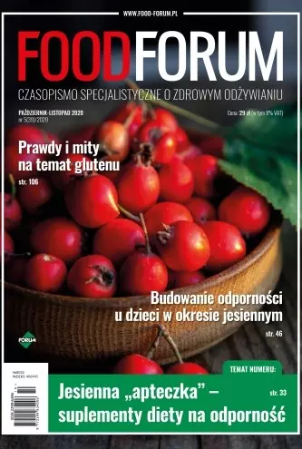 W jesiennym październikowym wydaniu polecamy zapoznanie się z rubryką “ABC prawidłowego żywienia”. Poruszamy w niej tematy takie jak: mleko i przetwory mleczne w diecie, prawdy i mity na temat glutenu czy olej rzepakowy w profilaktyce chorób układu krążenia. Bardzo ciekawym artykułem jest “Oznakowanie żywności - na co zwrócić uwagę” z działu Prawo i Administracja w Dietetyce. Dla kobiet w ciąży polecamy artykuł dotyczący stosowania ziół przez kobiety ciężarne. W dziale “Suplementy” udzielamy rad, jakie suplementy diety warto spożywać jesienią oraz piszemy o właściwościach i działaniu Mastiha.