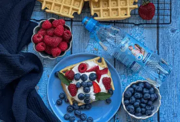 Na szybki, obłędnie pyszny oraz lekki letni deser polecają się bezmleczne waniliowe gofry z dodatkiem ulubionych owoców. Propozycja idealna dla całej rodziny. Smacznego!